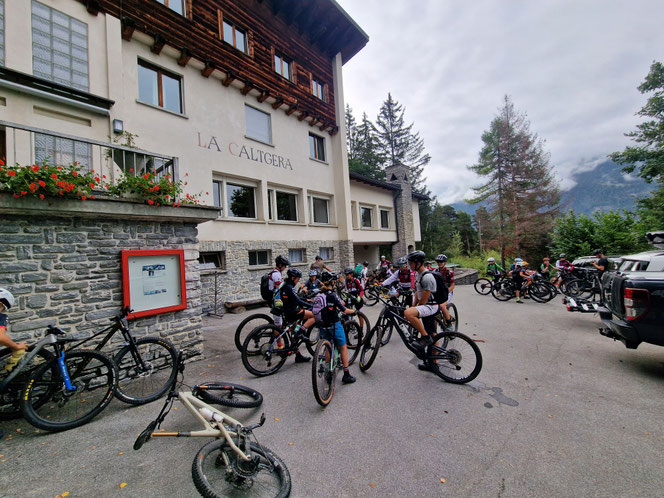 Mittagspause in S-Charl mit Älplermaccaroni und Pommes, stärkten uns für den letzten Aufstieg zum Pass Costainas. Auf der Abfahrt ins Münstertal trafen wir wieder auf den Rest unserer Gruppe und wir konnten zusammen ins Hotel fahren und dort einen Apero geniessen. Bei einem super Abendessen wurden die Erlebnisse vom Tag nochmals Revue passiert.