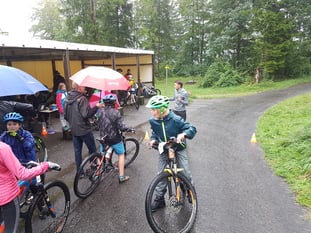 Betreuer an den vereinbarten Stellen. Dass die Trails nass und rutschig waren, sah